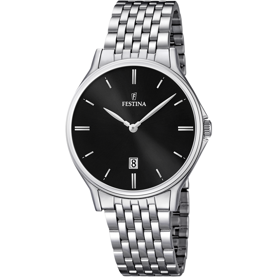 Relógio festina classics f16744/4 preto com correia de aço, para homem.