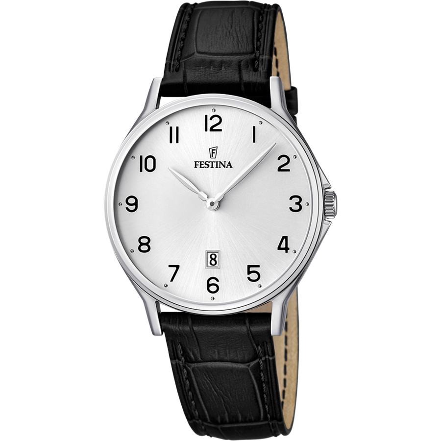 Relógio Festina Classics F16745/1 prateado com bracelete de couro, homem