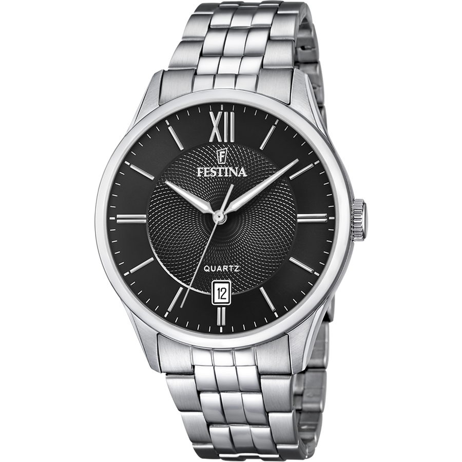 Relógio festina classics f20425/3 preto com correia de aço, para homem.