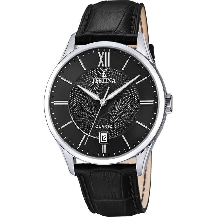 Relógio Festina Classics F20426/3 preto com bracelete de couro, para homem.