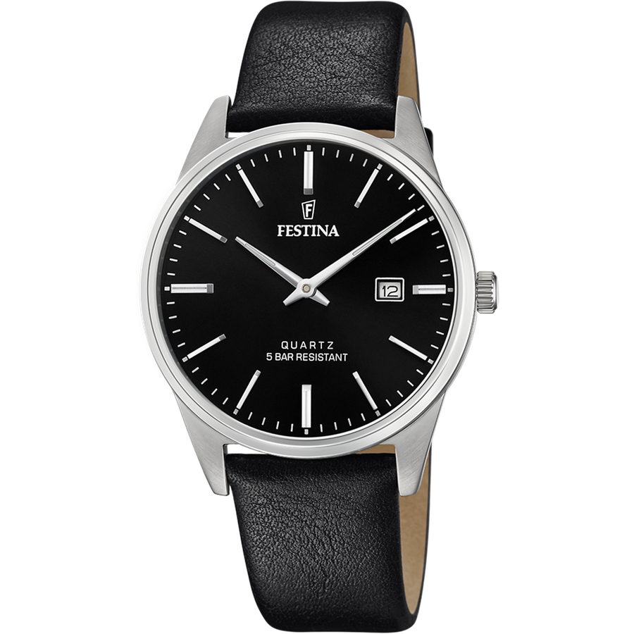 Relógio festina classics f20512/4 preto com correia de couro, para homem.