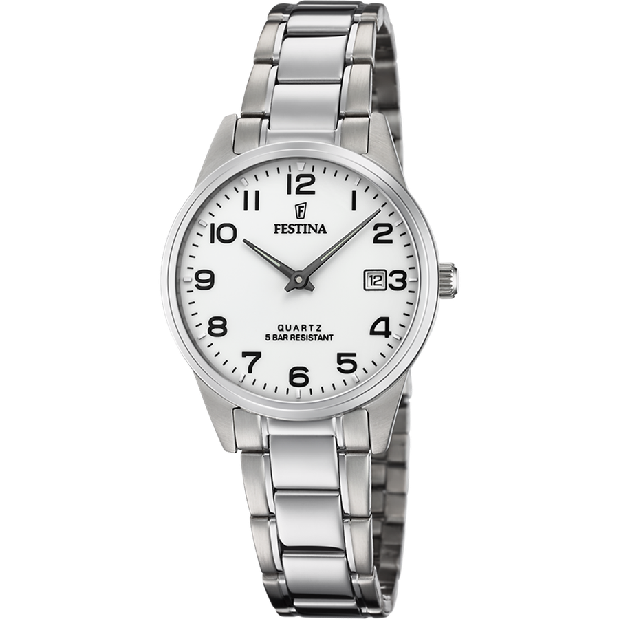 Relógio festina classics f20509/1 branco com correia de aço, mulher