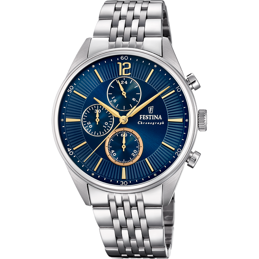 Relógio Festina Timeless Chronograph F20285/3 Azul com Pulseira de Aço, Masculino