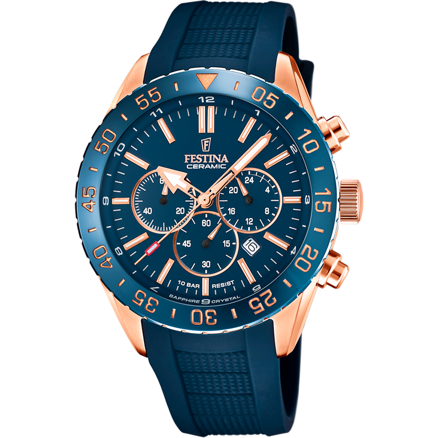 Relógio Festina Ceramic F20516/1 Azul com Bracelete de Borracha, Masculino