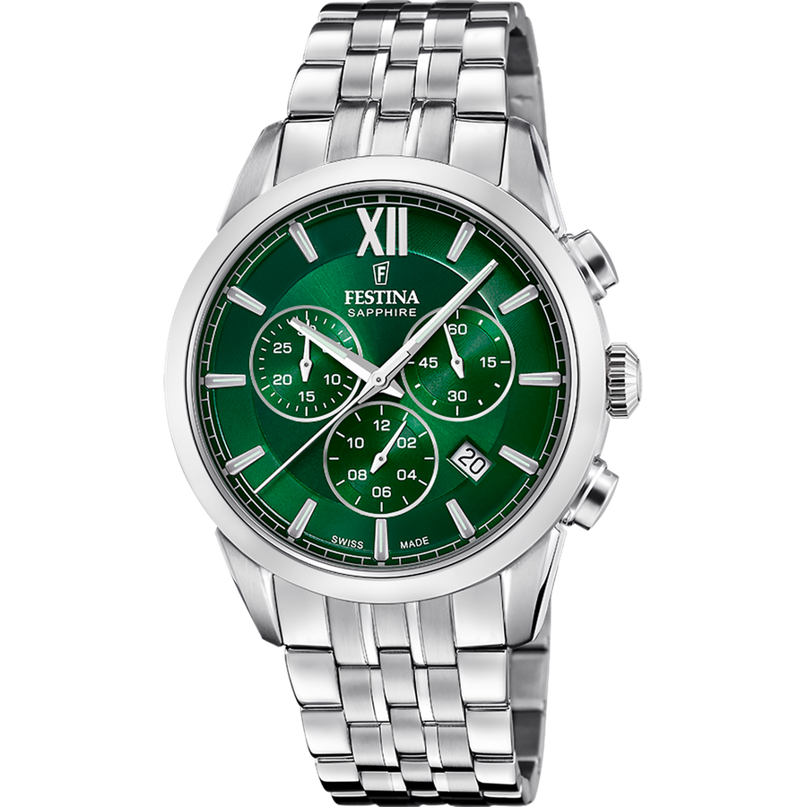 Relógio festina swiss made f20040/3 verde pulsera de 316l de aço inoxidável, homem