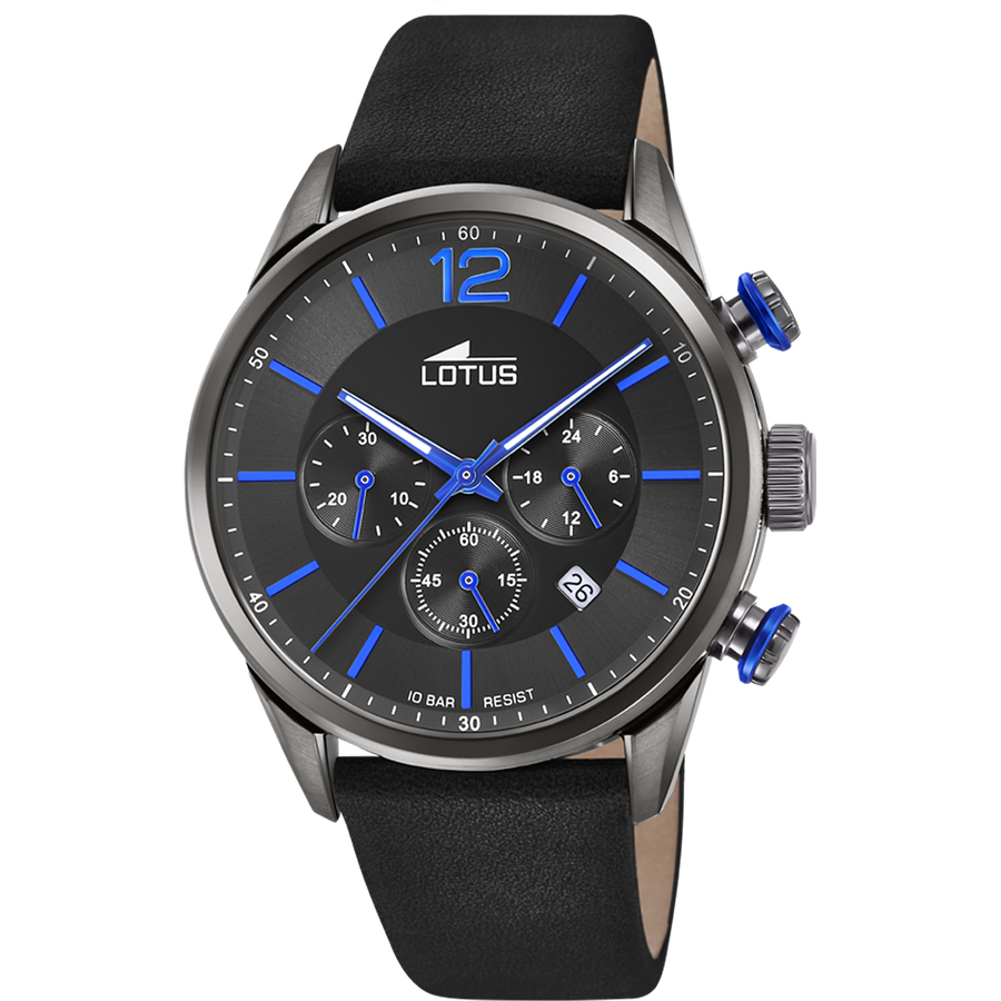 Relógio lotus chrono 18687/3 preto pulsera de couro, homem
