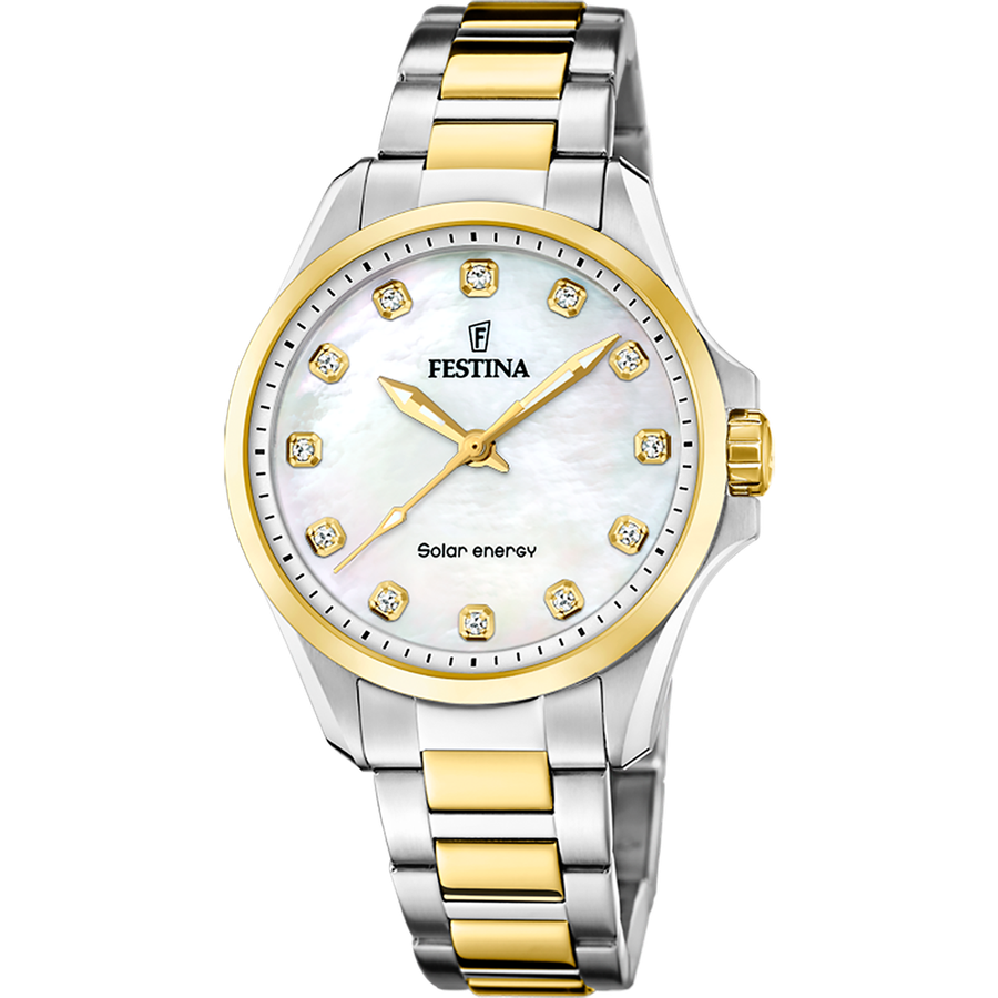 Festina energia solar f20655/1 creme aço inoxidável 316l, mulher